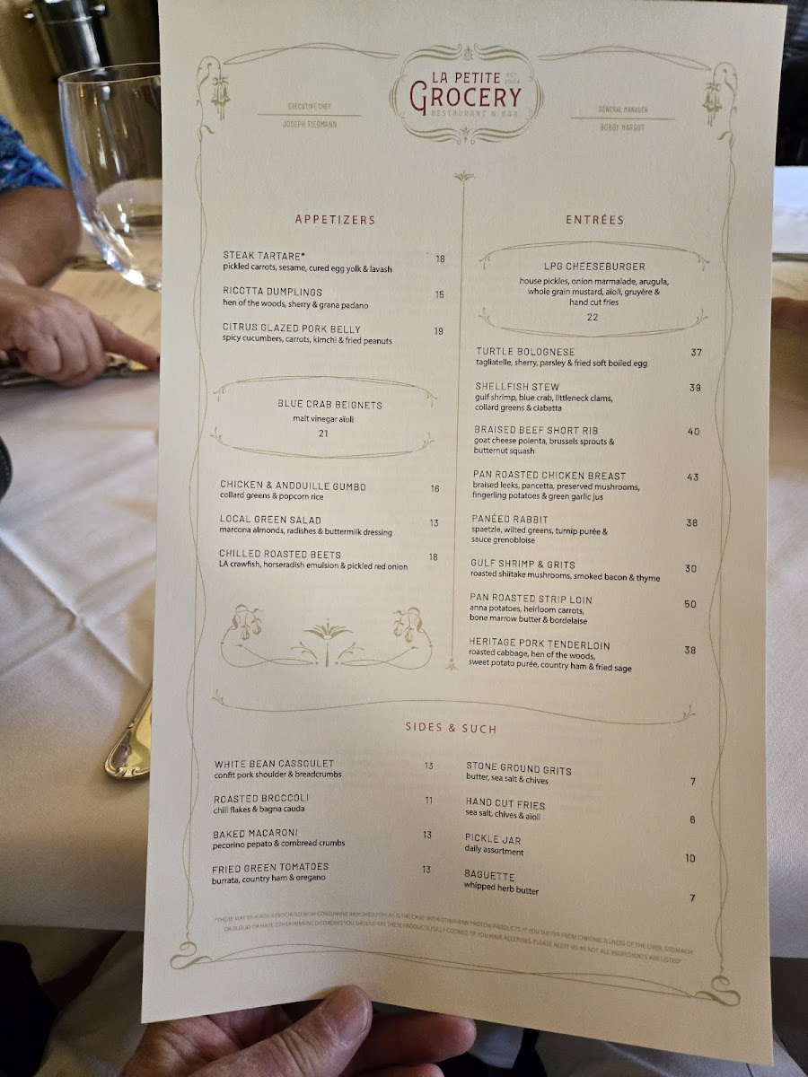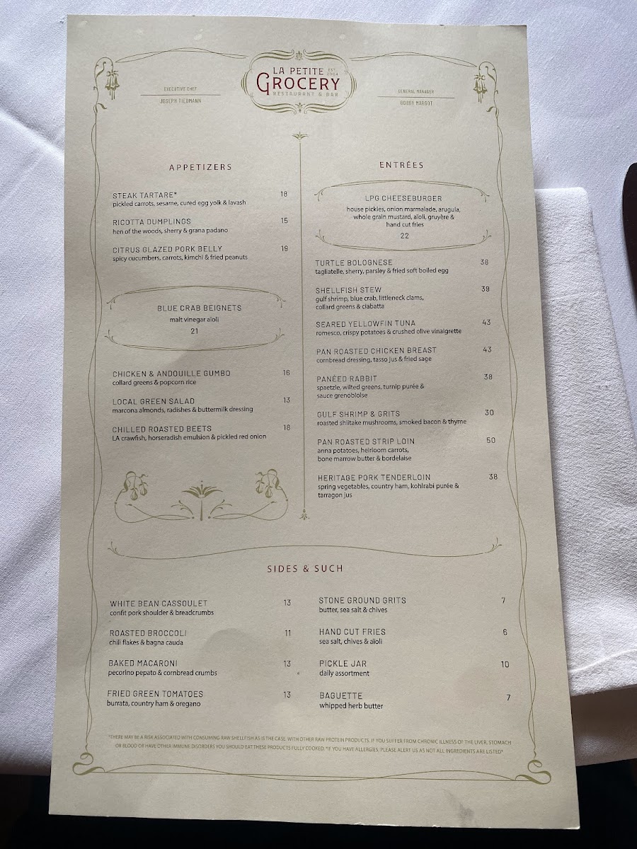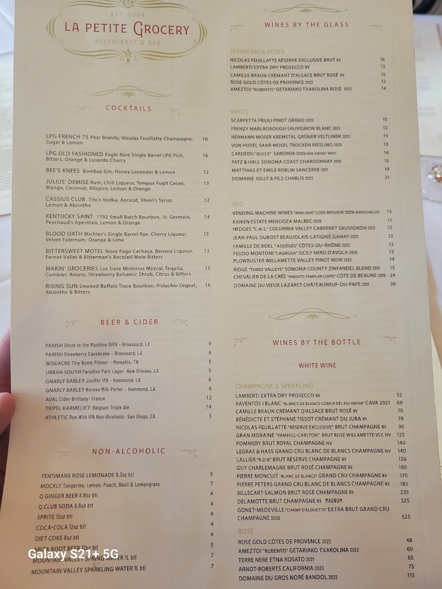 Finish your meal with the decadent Dark Chocolate Pave, a delightful homage to New Orleans' rich dessert culture. Whether you're dining indoors or al fresco, La Petite Grocery promises an exceptional experience that highlights the best of local gastronomy.